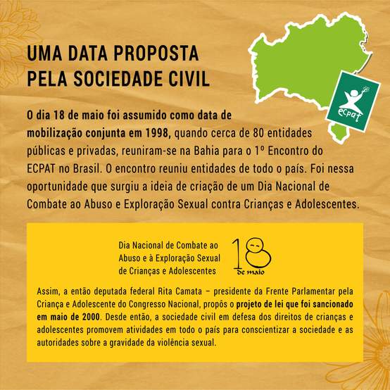 Chegamos ao 25º ano de mobilização do Dia 18 de Maio – “Dia Nacional de Combate ao Abuso e à Exploração Sexual de Crianças e Adolescentes”. Instituído pela Lei Federal 9.970/00, a data é uma conquista que demarca a luta pelos Direitos Humanos de Crianças e Adolescentes no território brasileiro e que já alcançou muitos municípios do nosso país. Esse ano temos como marco os 25 anos do mobilização da data pelo enfrentamento da violência sexual contra crianças e adolescentes. Vamos seguir construindo estratégias para que nenhuma criança ou adolescente tenha que vivenciar as marcas da violência sexual ou da impunidade.